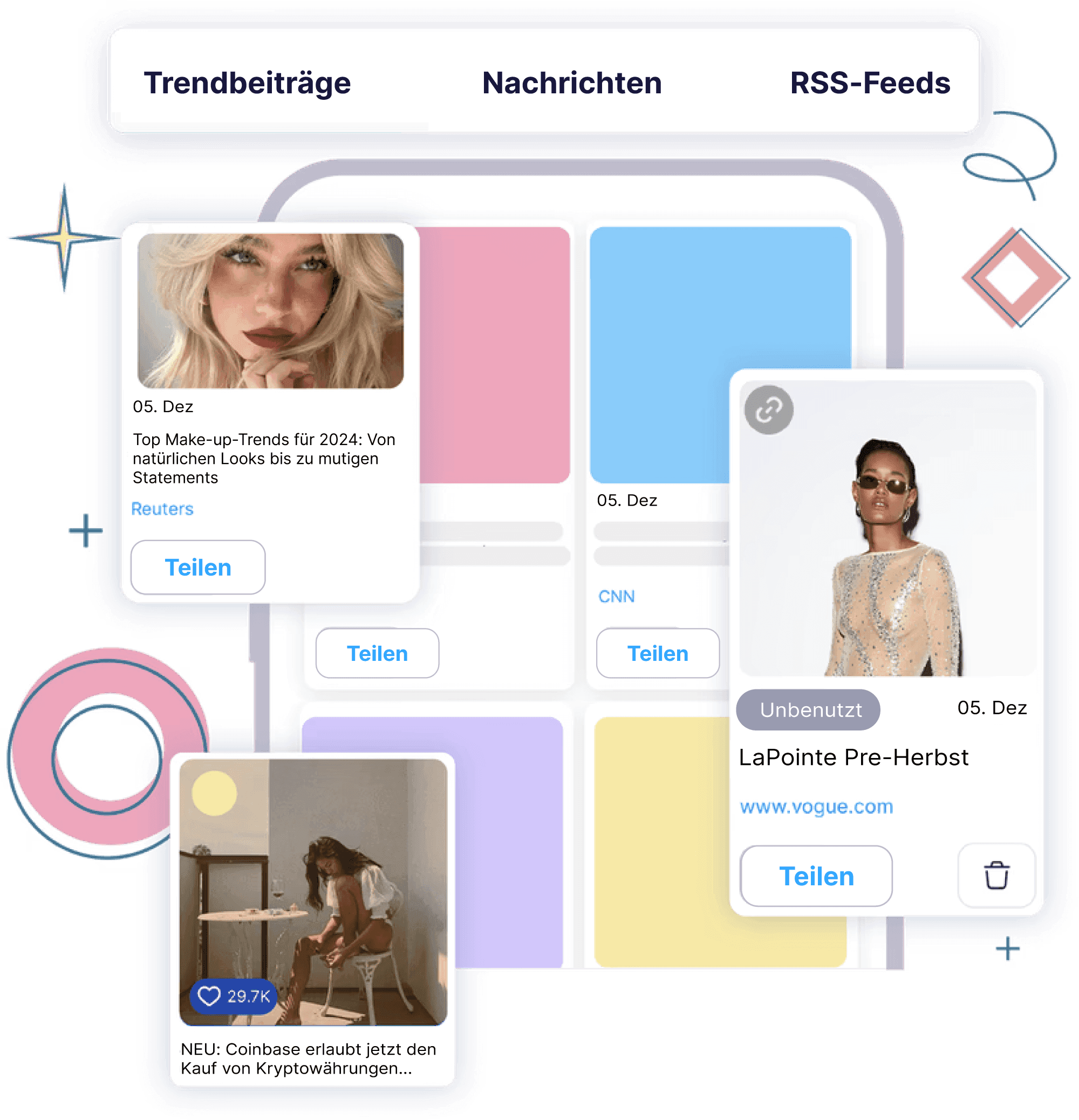 Greife auf die neuesten Social-Media-Trends und Branchen-News zu, um auf dem Laufenden zu bleiben und sich für deinen nächsten Beitrag inspirieren zu lassen.