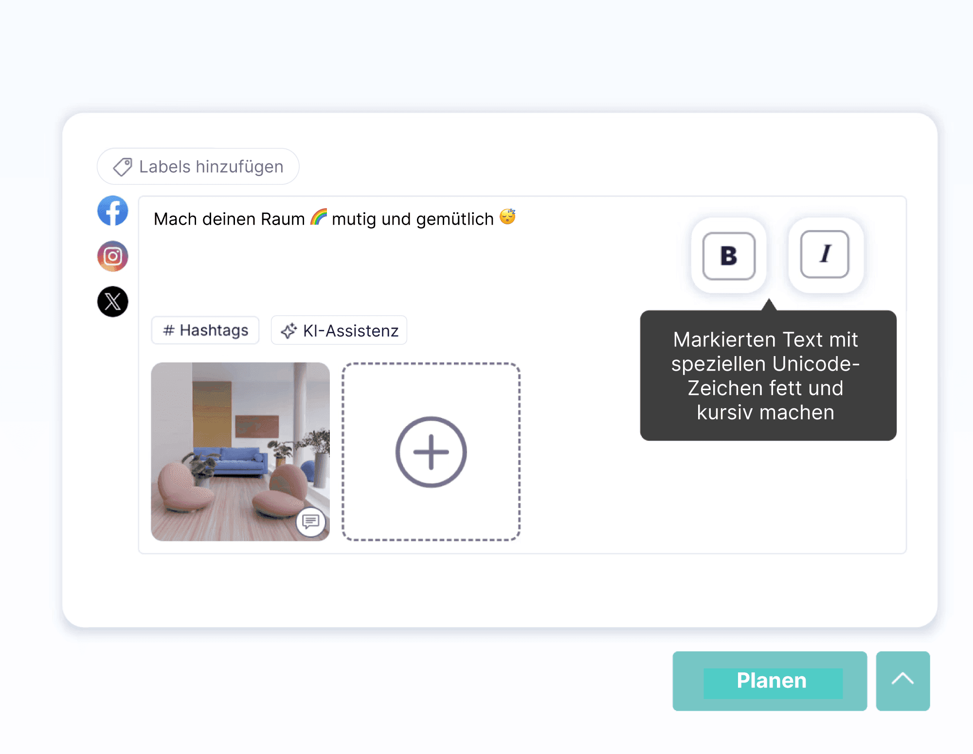 Anders als andere Erweiterungen zum Teilen in Social Media bietet die Publer-Erweiterung einen praktischen Mini-Editor. Damit kannst du Text formatieren, Beiträge planen, nachträgliche Kommentare hinzufügen und sogar Hashtags erstellen, ohne die Seite verlassen zu müssen, auf der du gerade arbeitest.