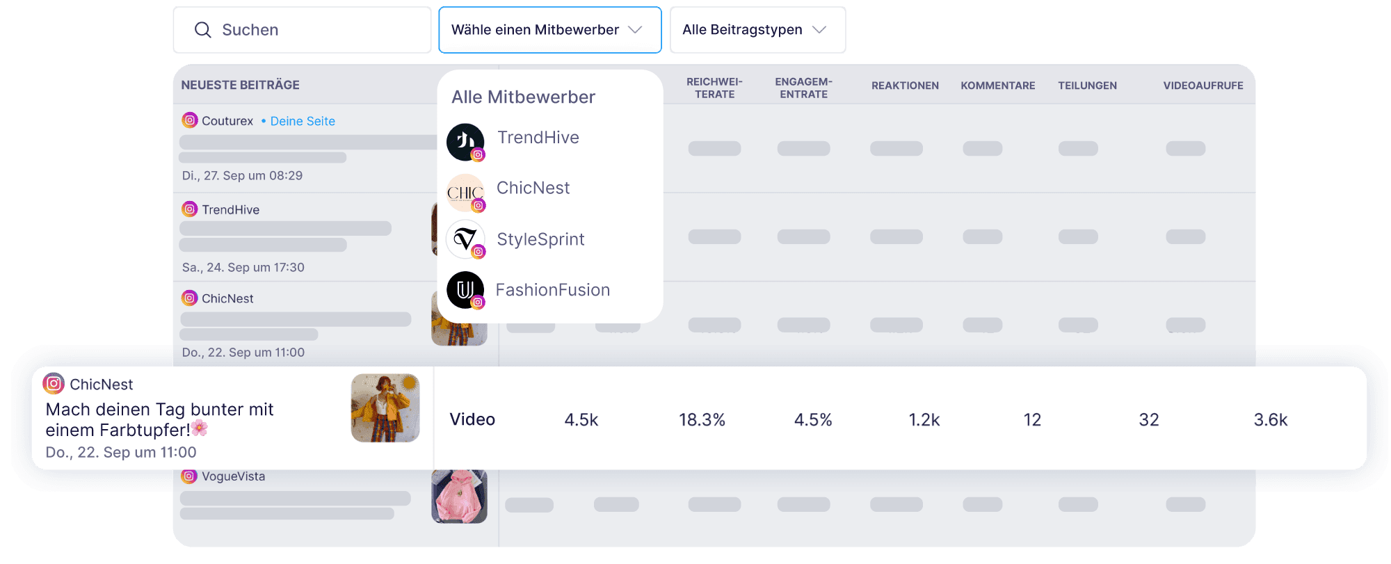 Verfolge die Top-Inhalte, Hashtags, Strategien, Wachstumsstrategien und Spitzenzeiten deiner Instagram-Konkurrenten.