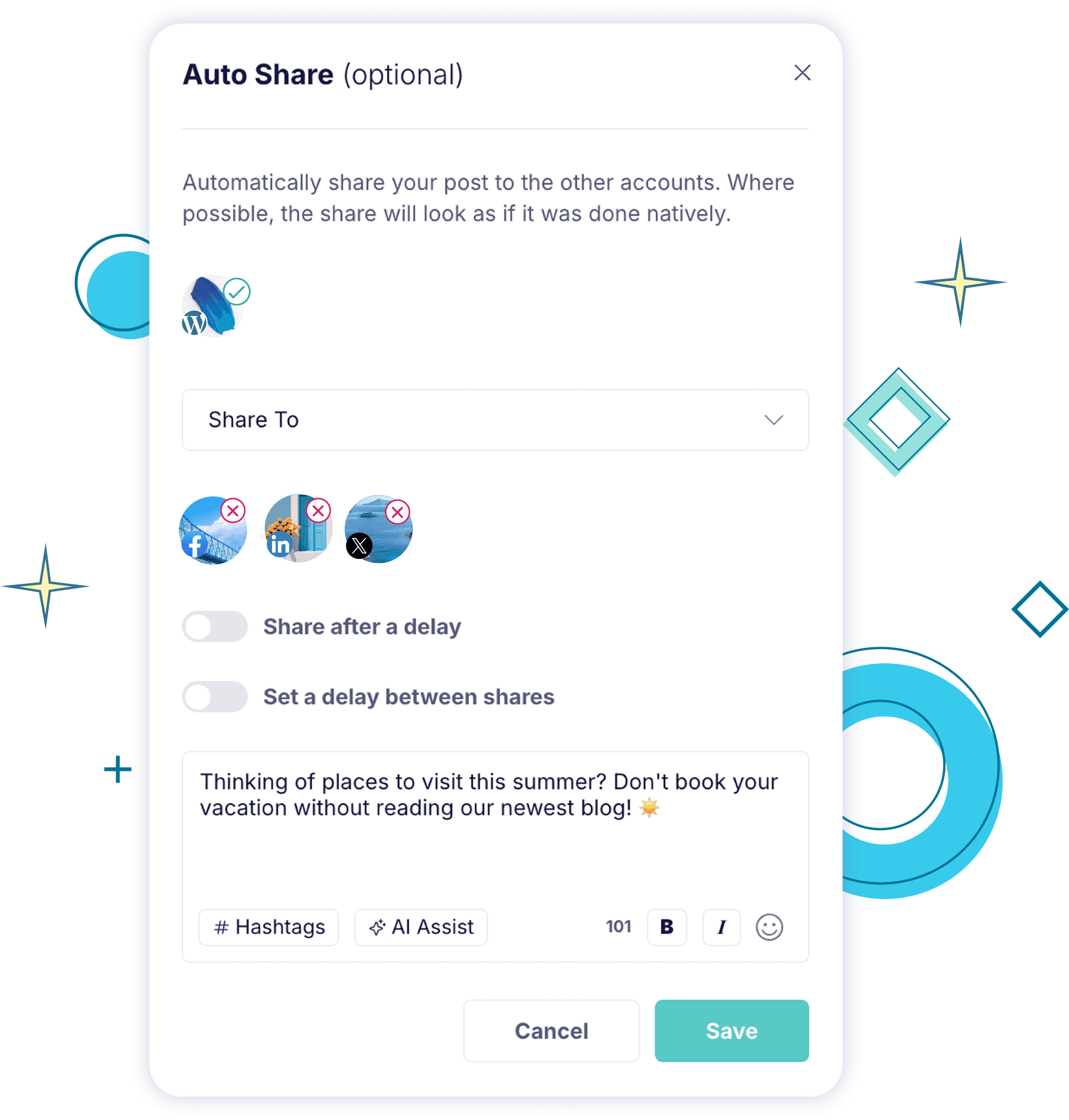 Mit Publer kannst du jeden WordPress-Blogbeitrag automatisch auf all deinen sozialen Kanälen teilen, sobald er veröffentlicht wird, um den Traffic sofort zu steigern.