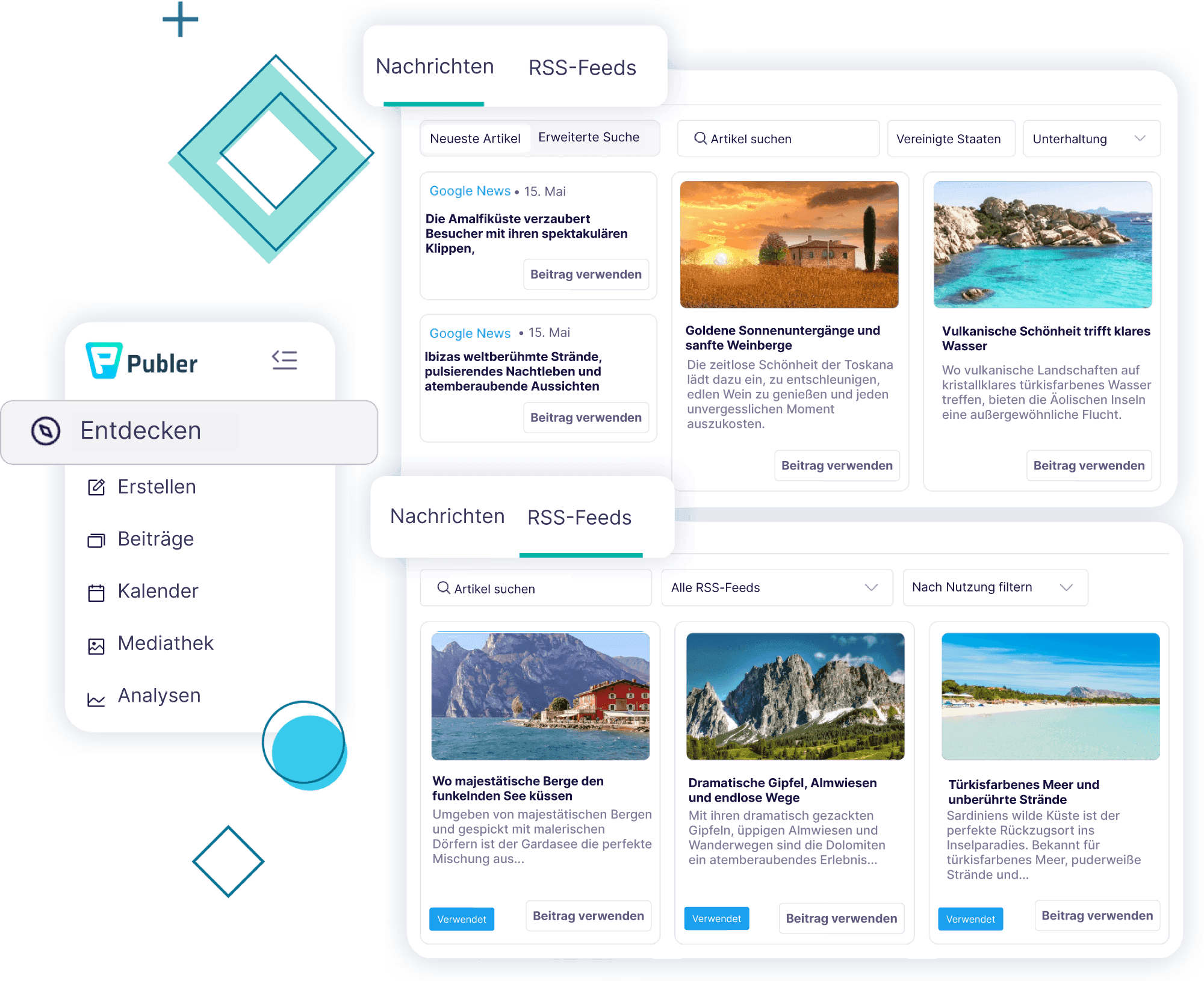 Verwende auffällige Medien von Unsplash, Giphy oder aus deiner eigenen Bibliothek oder nutze Publers KI, um einzigartige Bilder für deine Blogs zu erstellen.