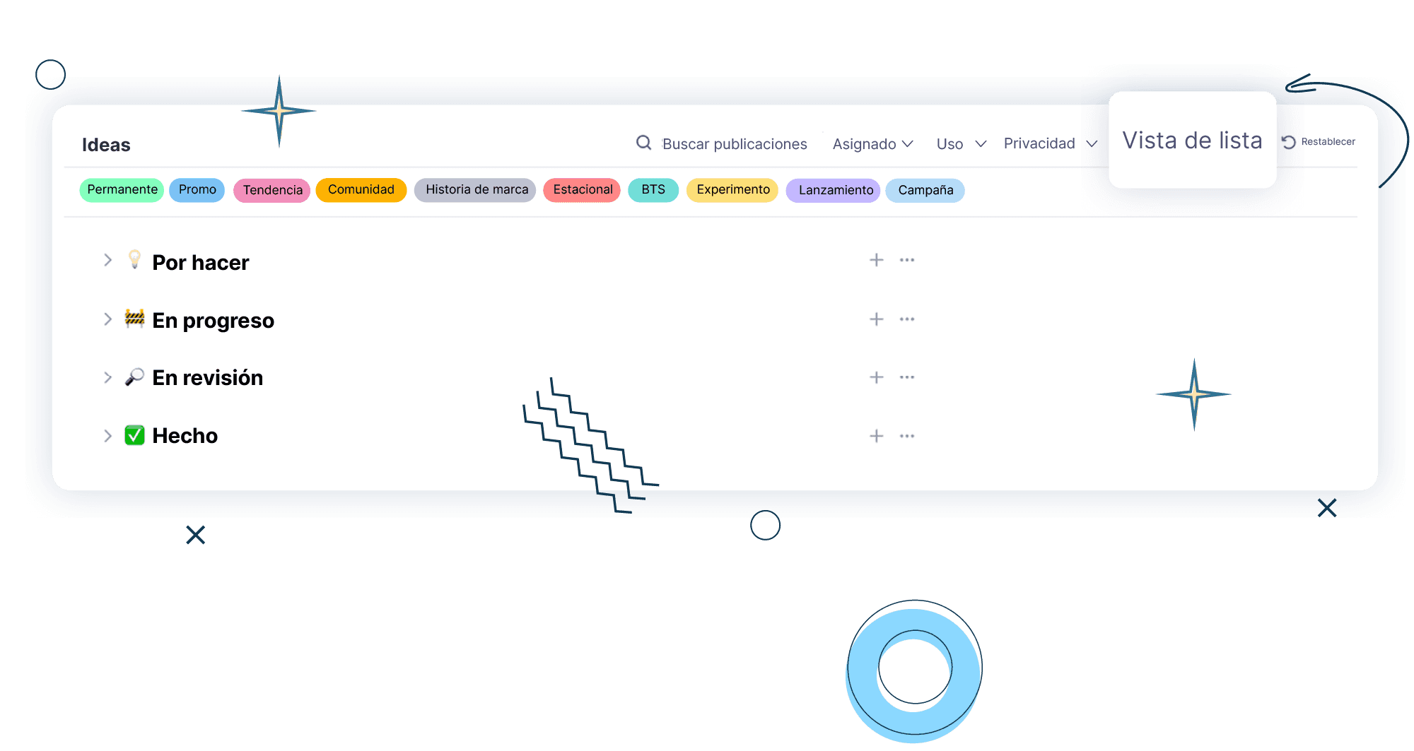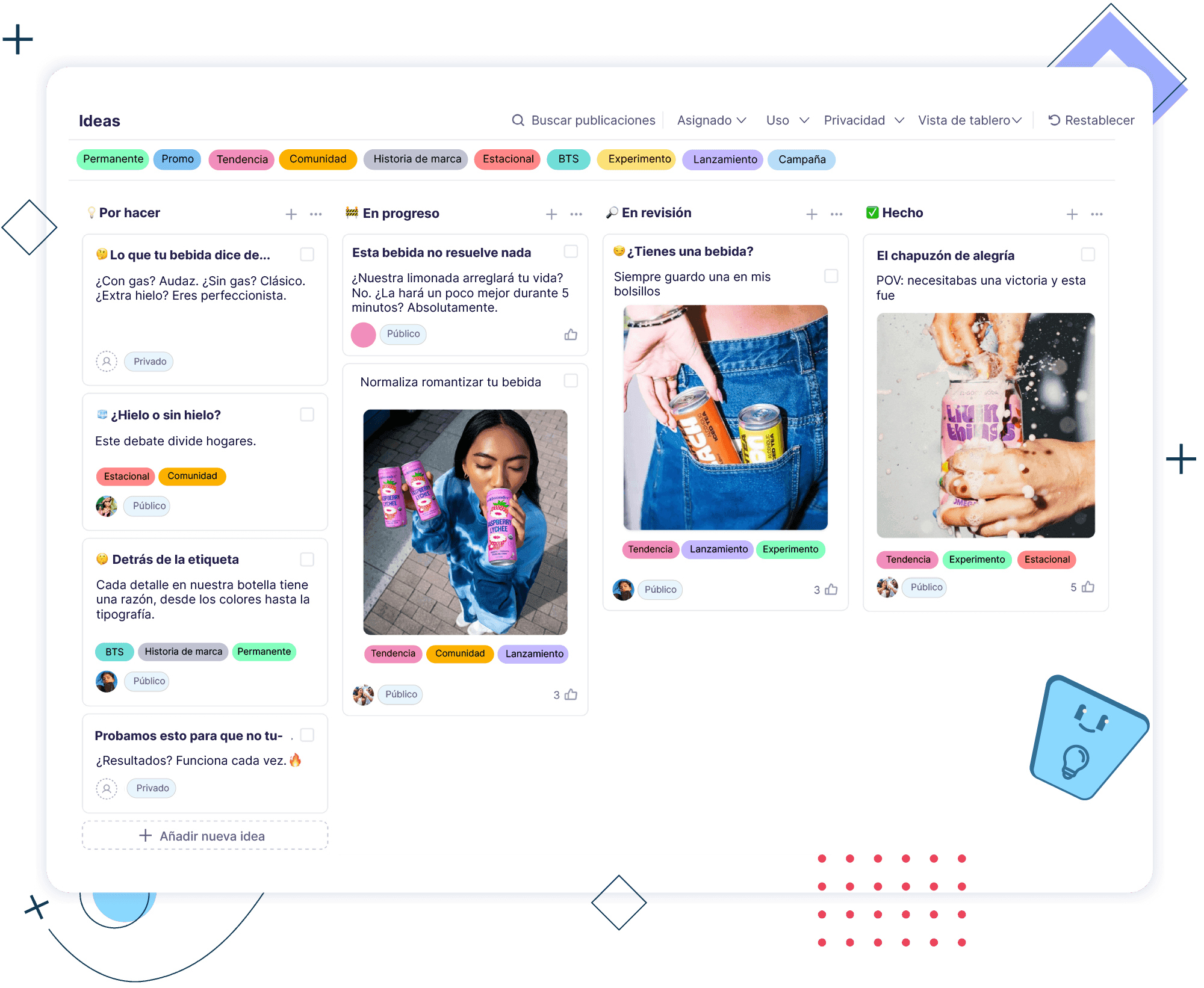 Ver y gestionar ideas de publicaciones a tu manera