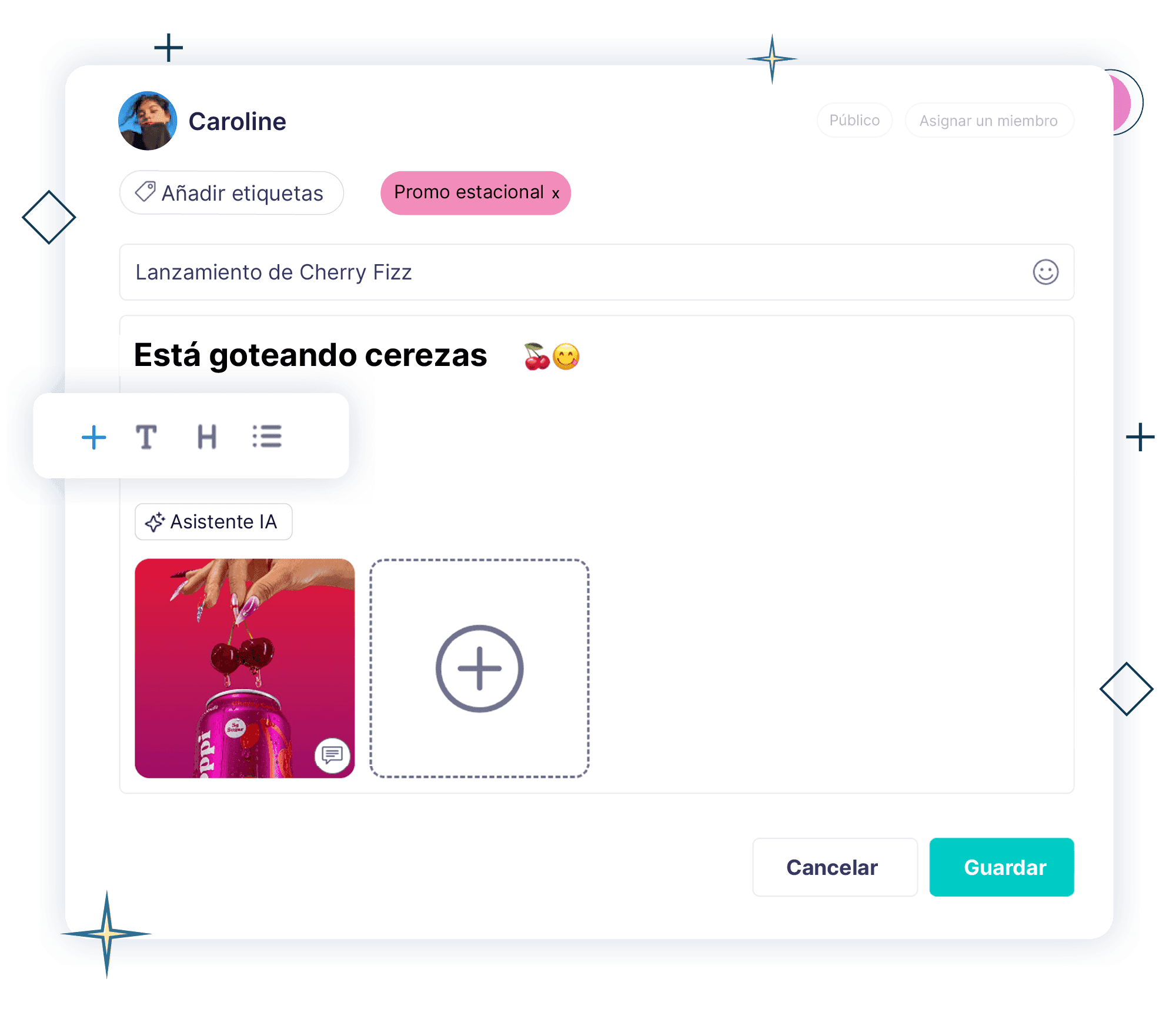 Agrega etiquetas, notas y detalles para dar forma a cada idea y mantener todo fácil de gestionar.