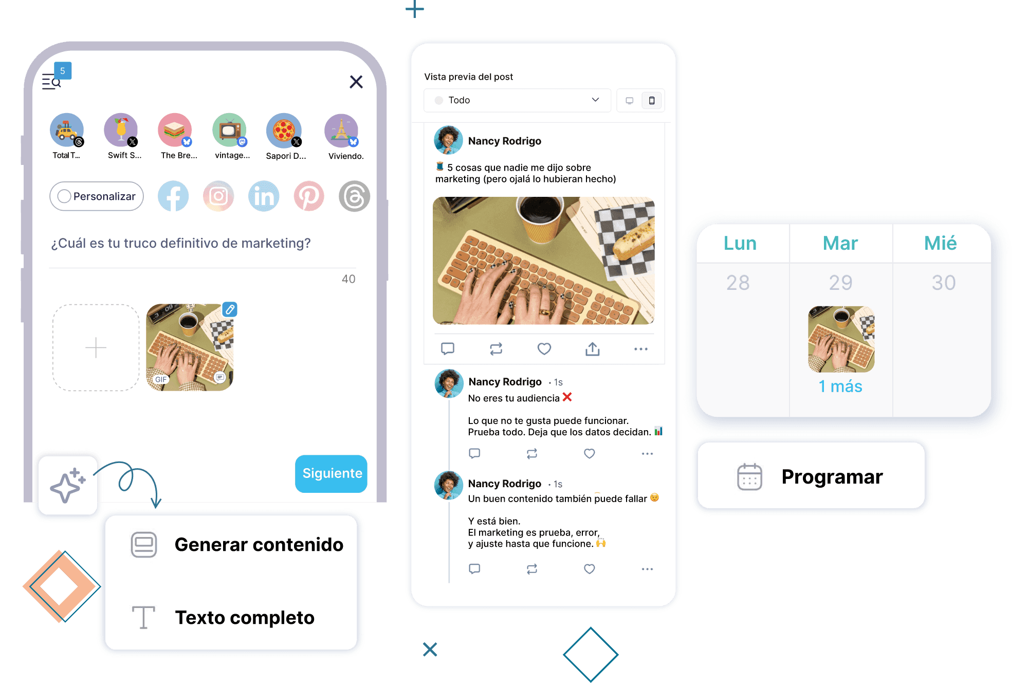 ¿Cómo programo publicaciones para X (Twitter), Threads, Mastodon y Bluesky al mismo tiempo?