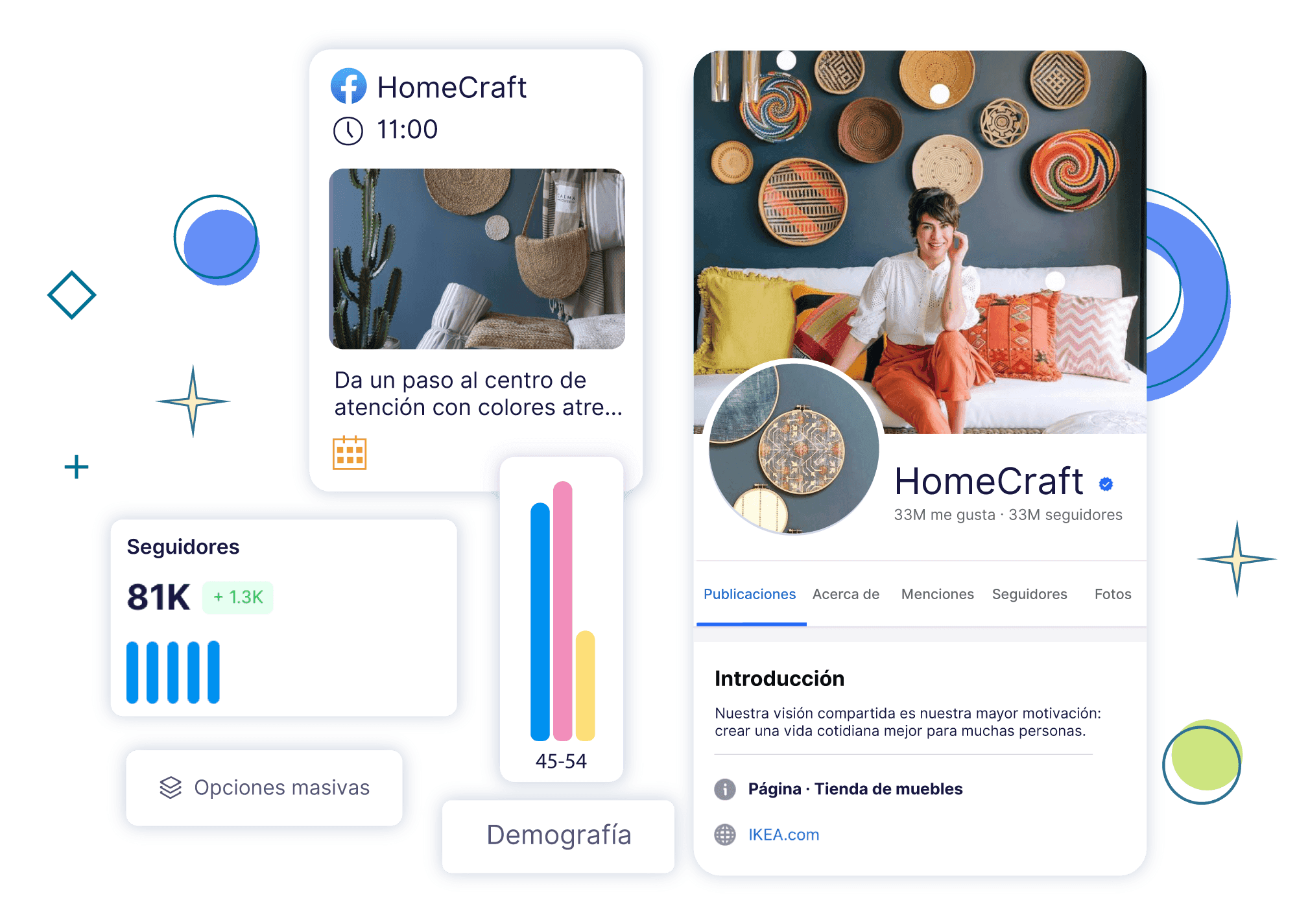 Administra y crece múltiples Páginas de Facebook, Grupos y Perfiles Personales desde un único panel de control.