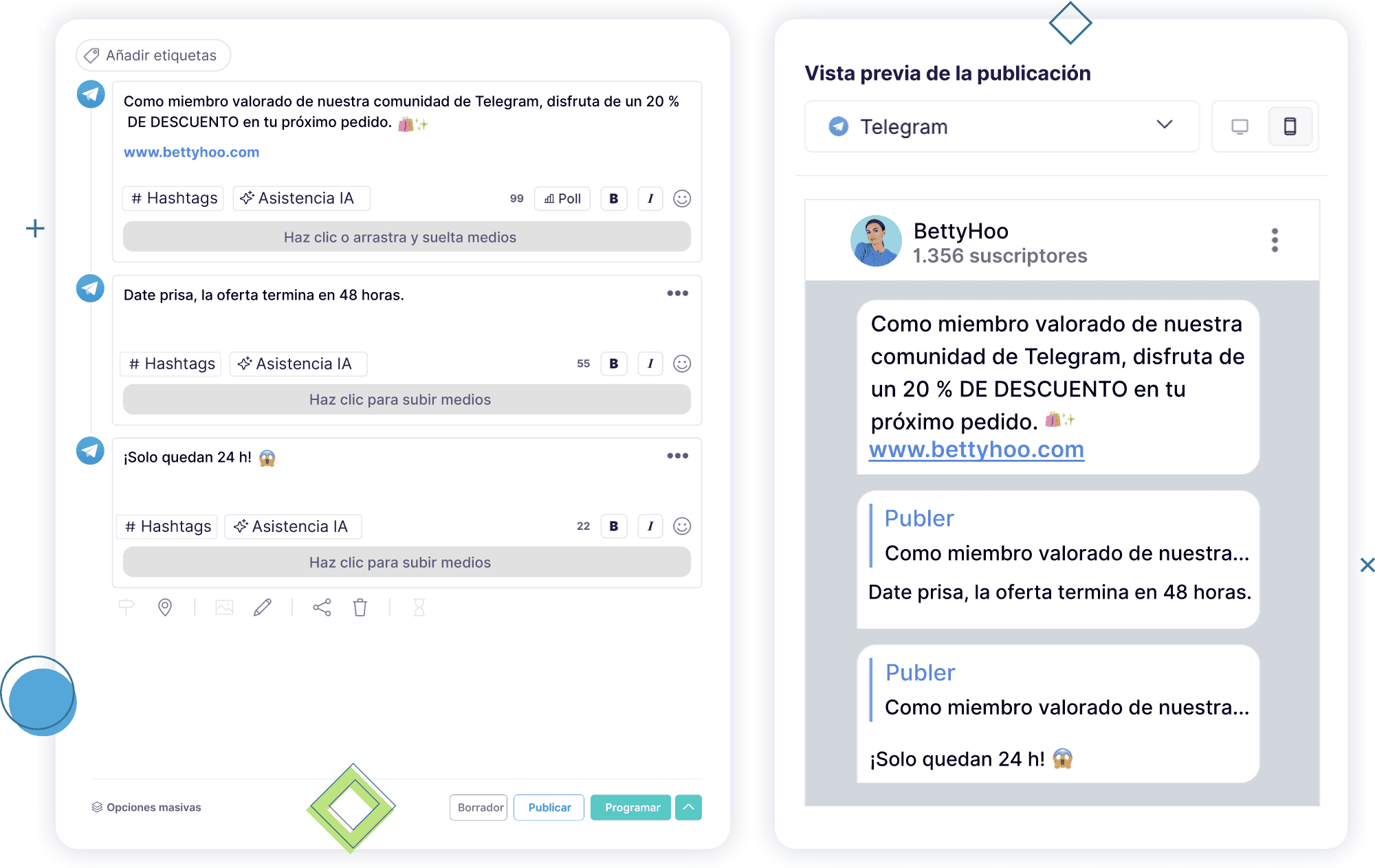 Haz crecer tu comunidad de Telegram con las herramientas de programación de Publer
