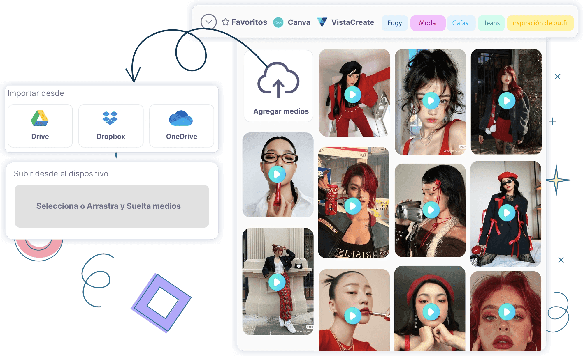 Edita tus videos a la perfección con las herramientas de VistaCreate directamente desde Publer. Elige entre plantillas listas para crear videos desde cero.