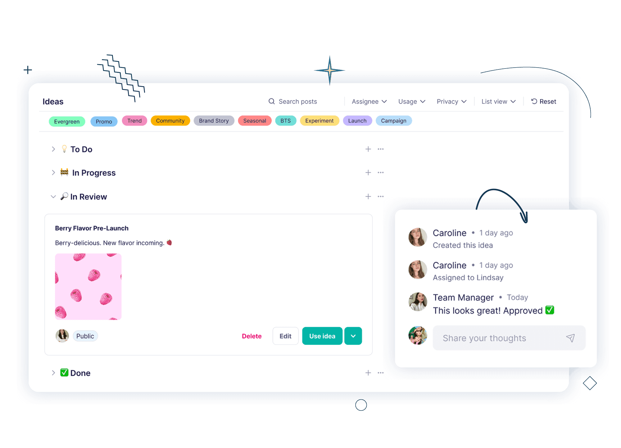 Yes. You can assign ideas, leave notes, and get clear approvals, making it easy to plan content with teammates or clients.