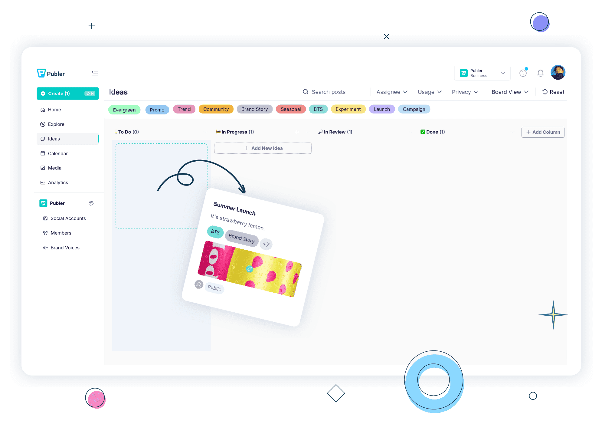 Publer Ideas is a content planning space where you capture, organize, and shape social media ideas before they get scheduled.