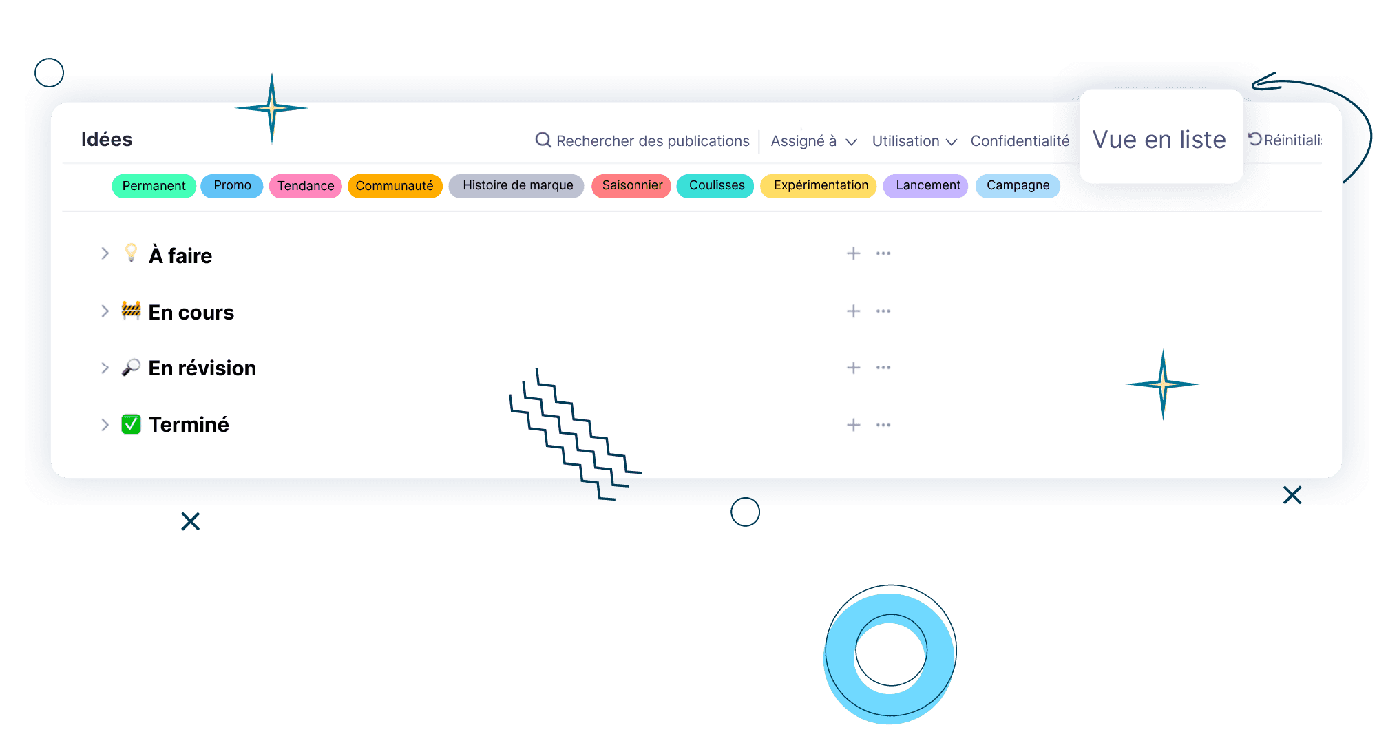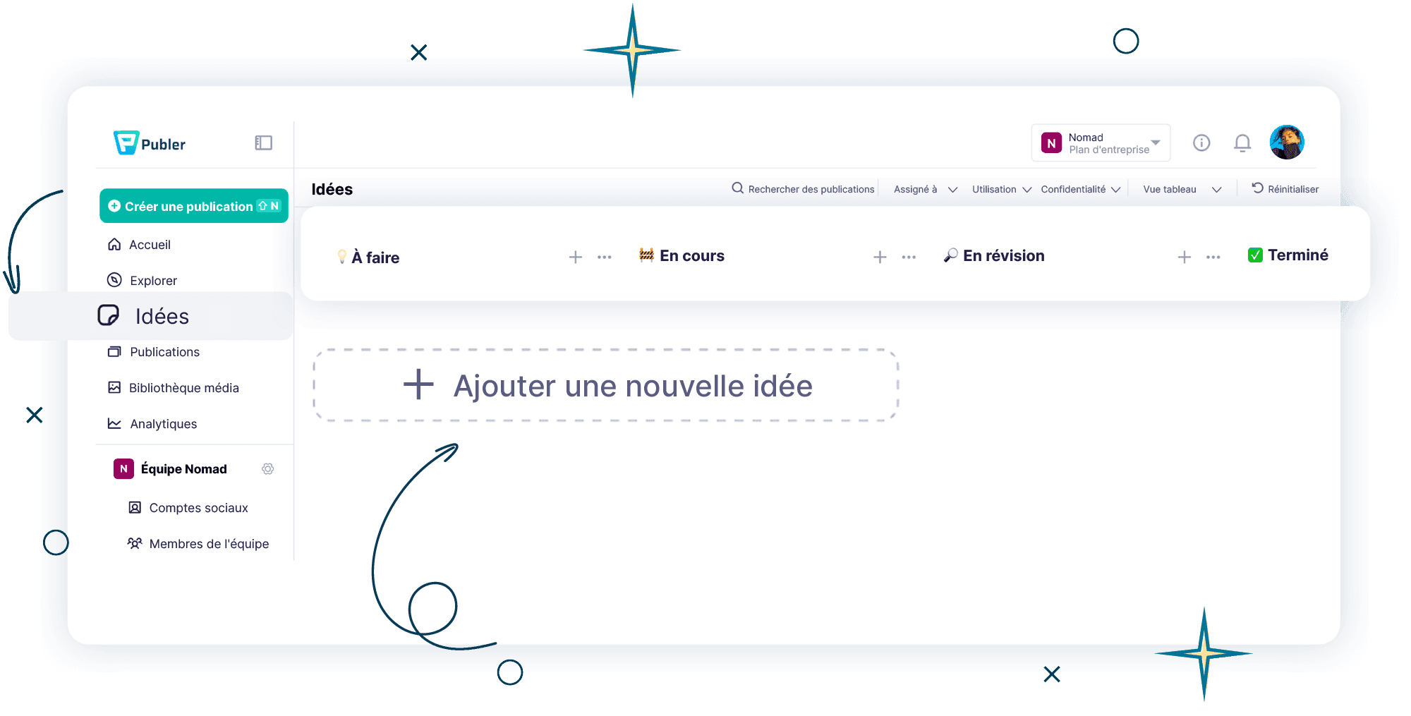 Publer Ideas est votre espace dédié pour capturer des idées, structurer du contenu et collaborer clairement, le tout avant que quoi que ce soit ne soit planifié.