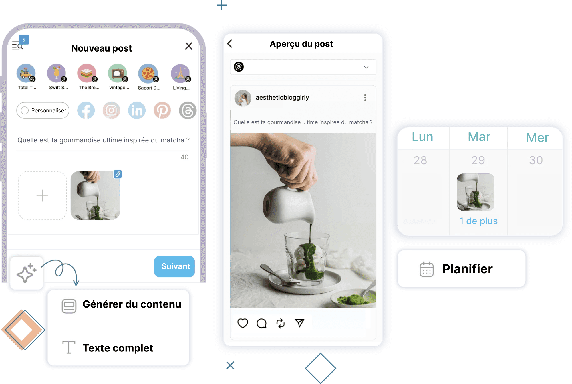 Ce qui est viral l’est partout. Surveille les tendances sur X et Instagram, puis intègre-les facilement à ta stratégie Threads pour garder ton contenu à jour et toucher un public mondial.