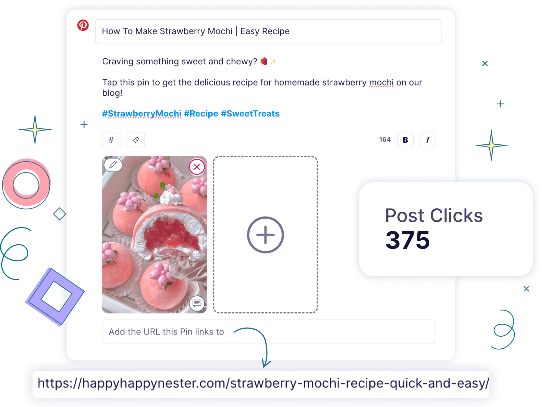 Every pin is a chance to drive clicks to your website. Link your content with optimized Pinterest URLs and track results with Pinterest traffic analytics.