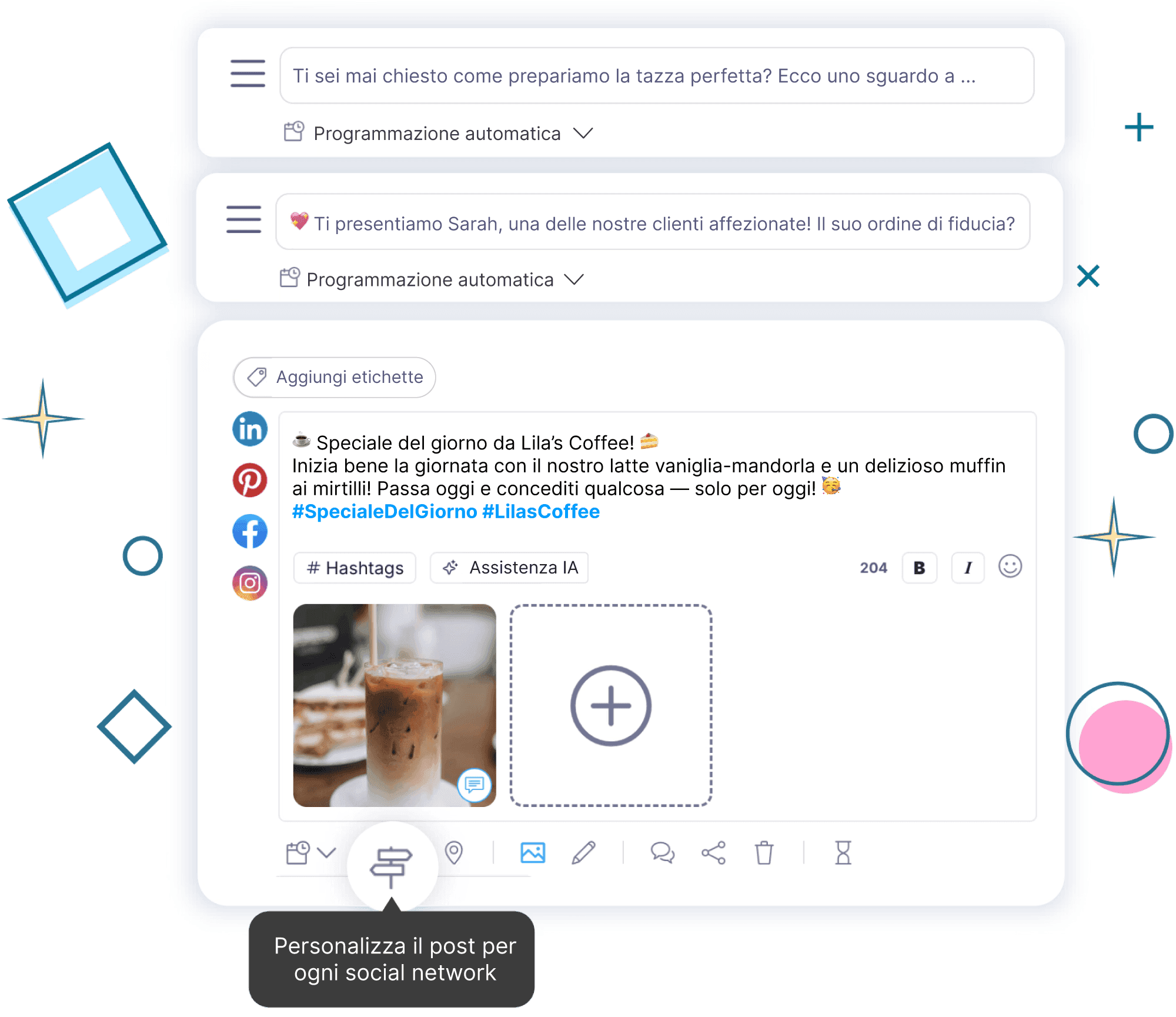 Modifica, personalizza e programma i post in blocco su più account di social media da un'unica dashboard.