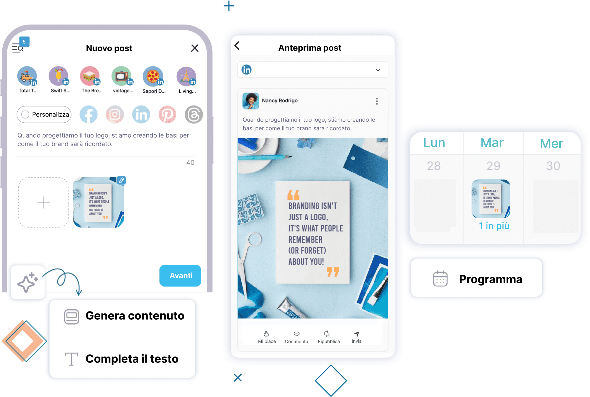 Pianifica, crea e programma i post per le pagine aziendali di LinkedIn o per i profili personali. Analizza e ottimizza la tua crescita su LinkedIn.