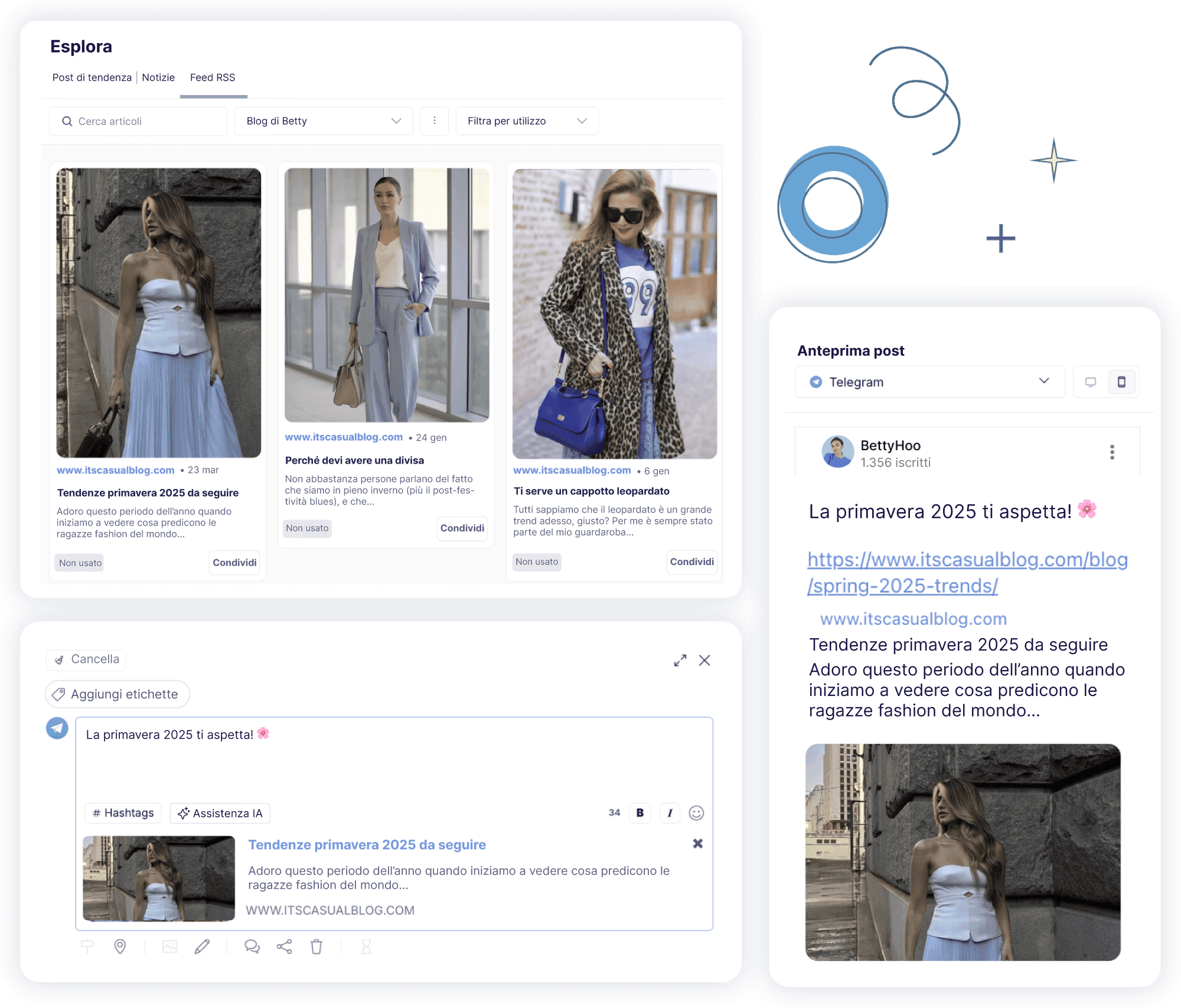 Condividi automaticamente gli aggiornamenti del tuo blog su Telegram utilizzando l'integrazione del feed RSS di Publer con Telegram.