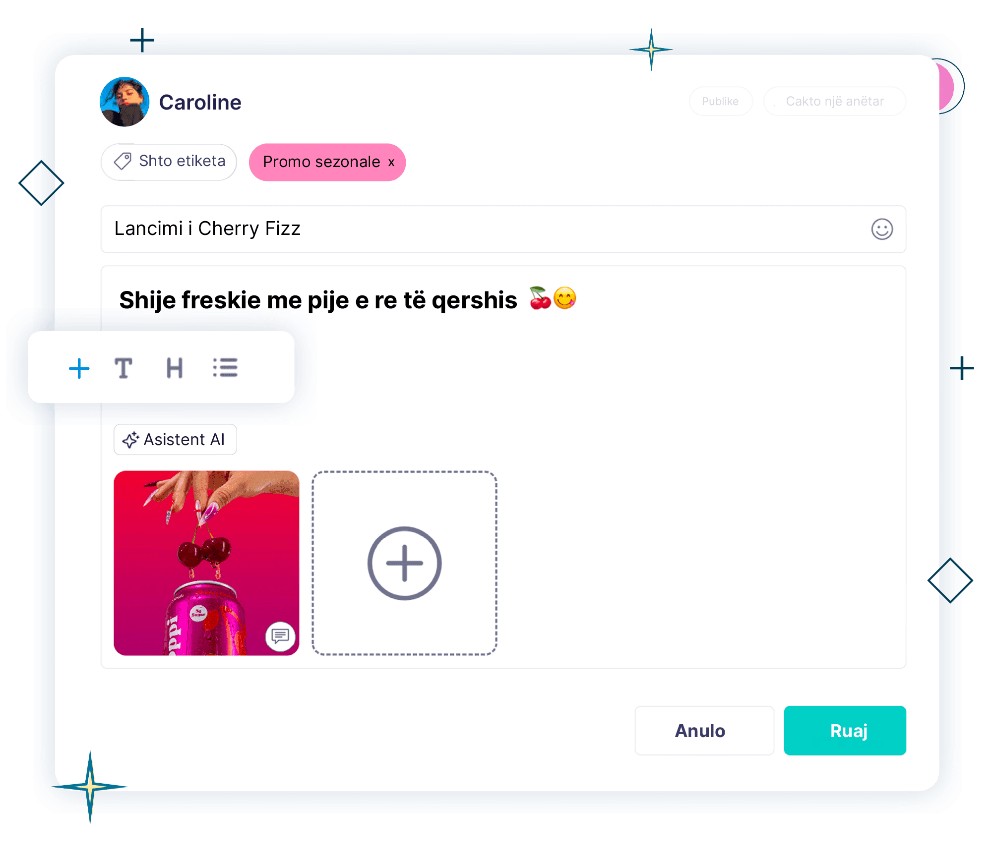 Kur një ide është gati, mund të përdorni AI për ta shndërruar në një postim në rrjetet sociale gati për publikim, duke ju ndihmuar të kaloni nga koncepti në ekzekutim më shpejt.