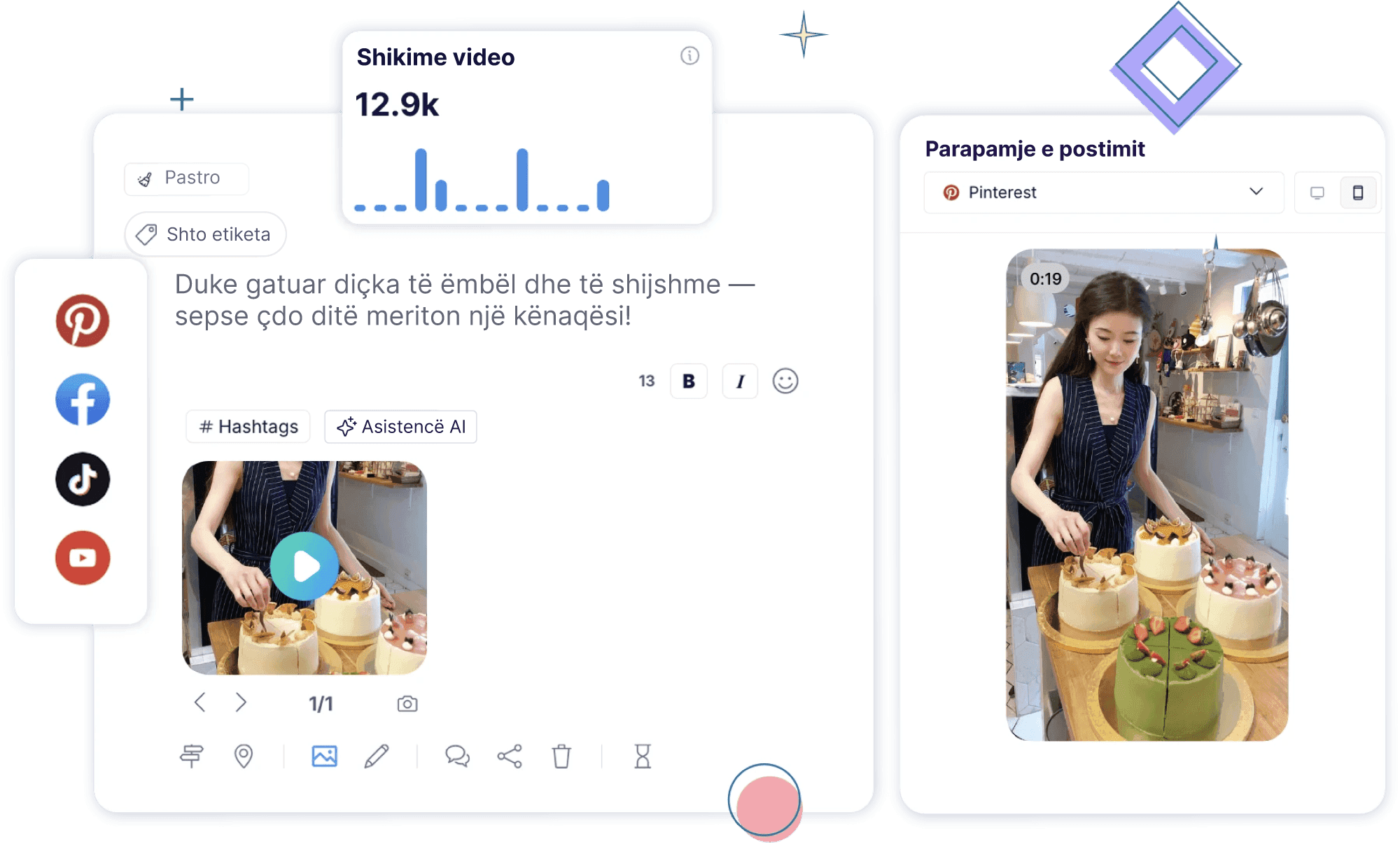 Planifiko postime për Pinterest, automatizo përmbajtjen tënde dhe shto trafikun drejt website-t tënd me planifikuesin më të mirë për Pinterest si për creators ashtu edhe për business.