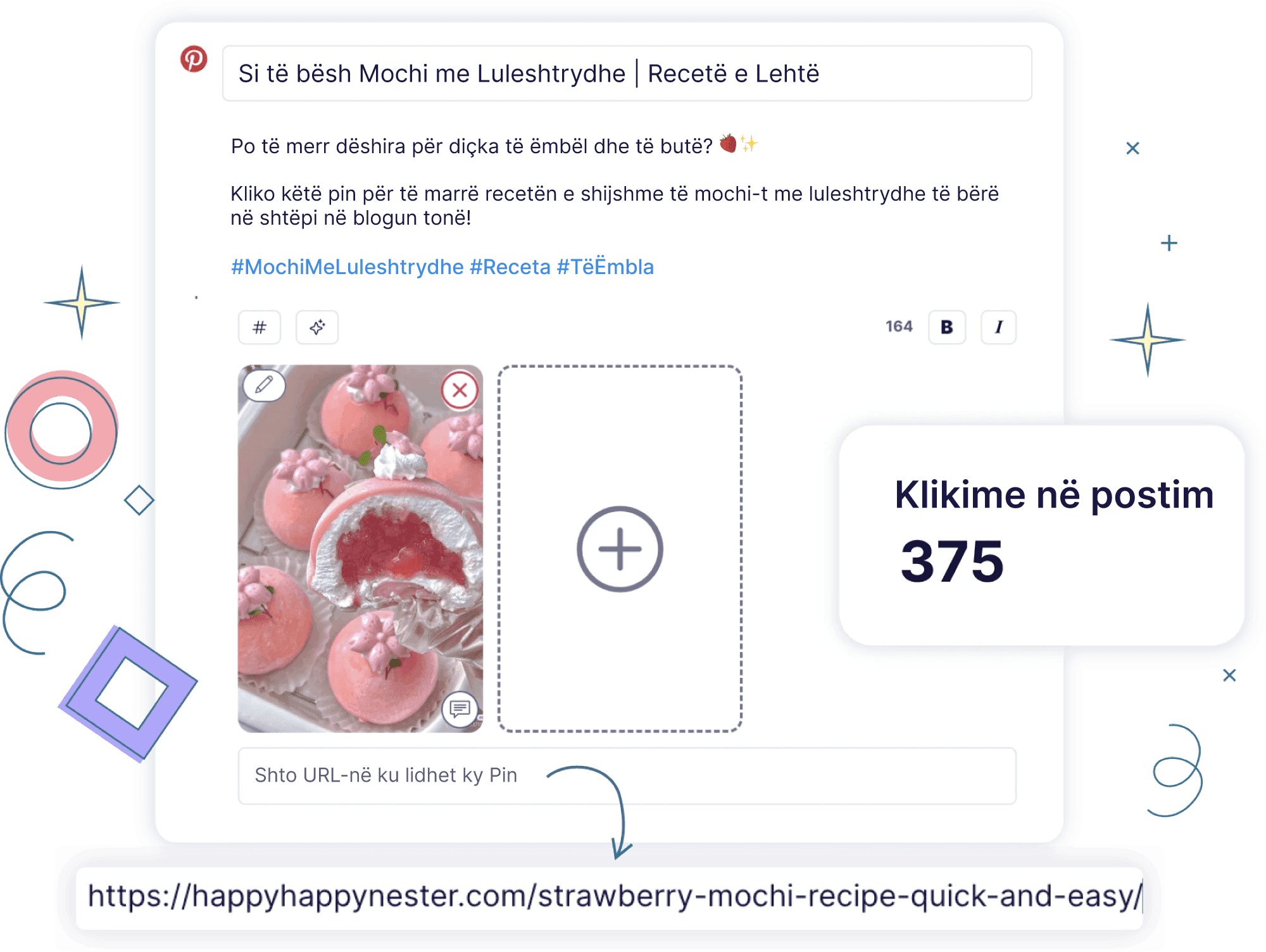 Patjetër! Optimizo pin-et e tua me alt text për Pinterest, hashtag-et më të mira në Pinterest dhe përshkrime të gjeneruara nga inteligjenca artificiale.